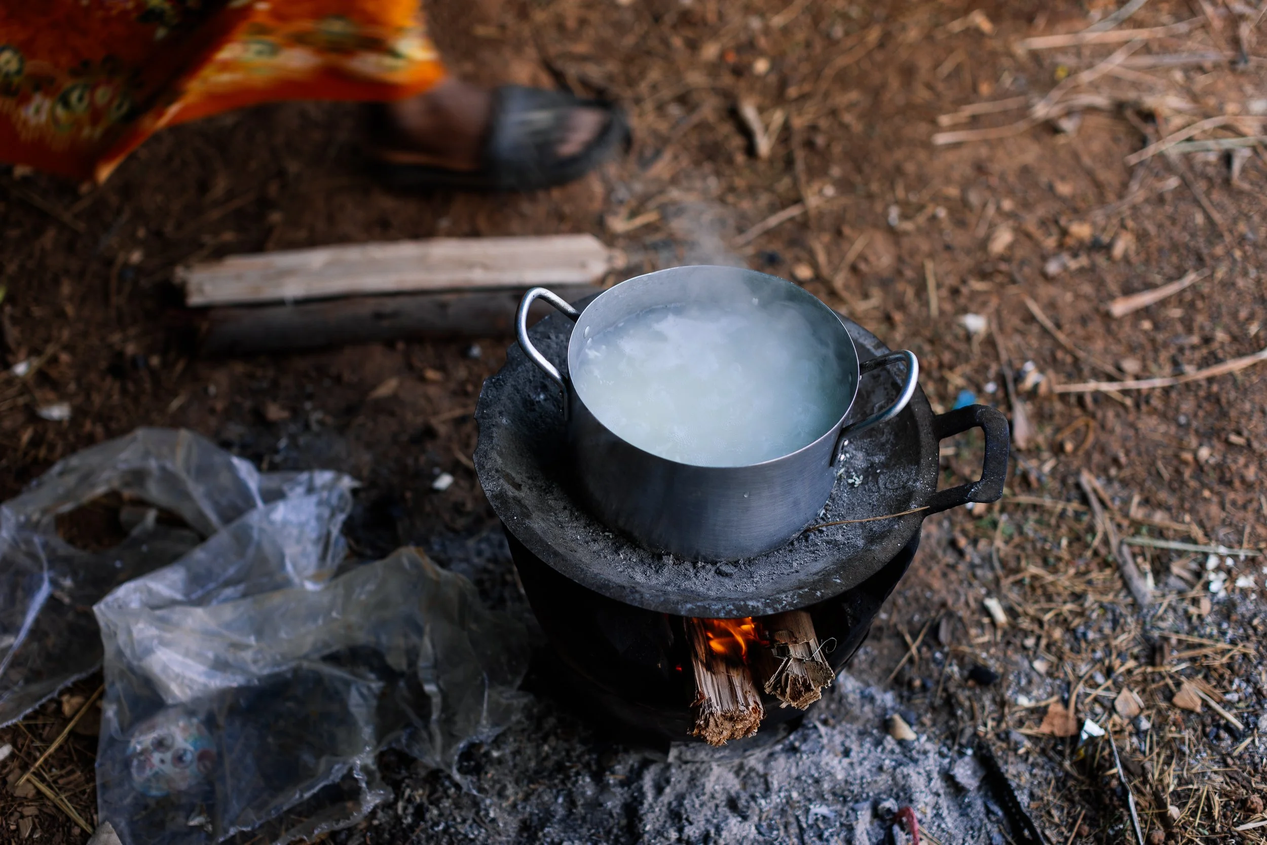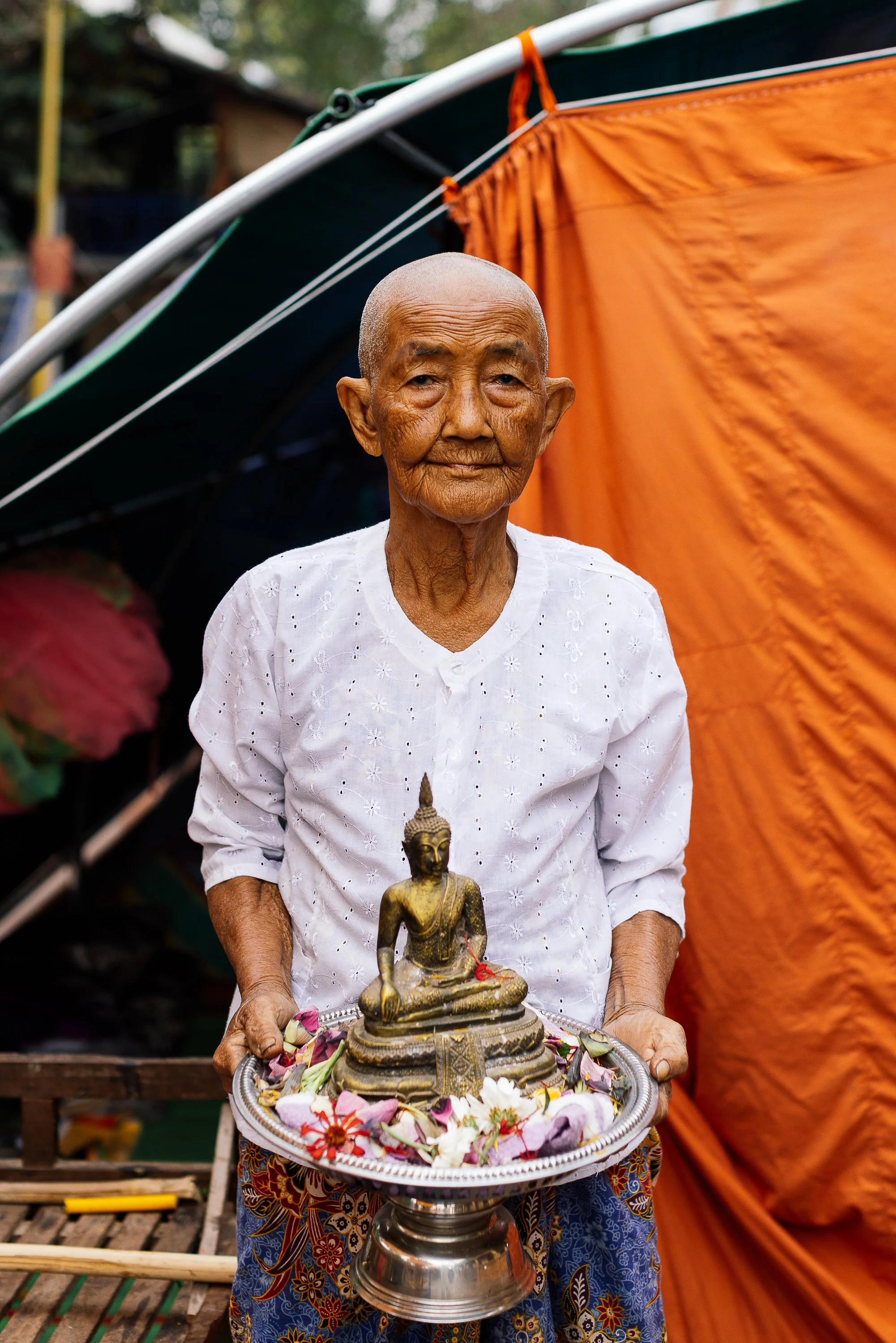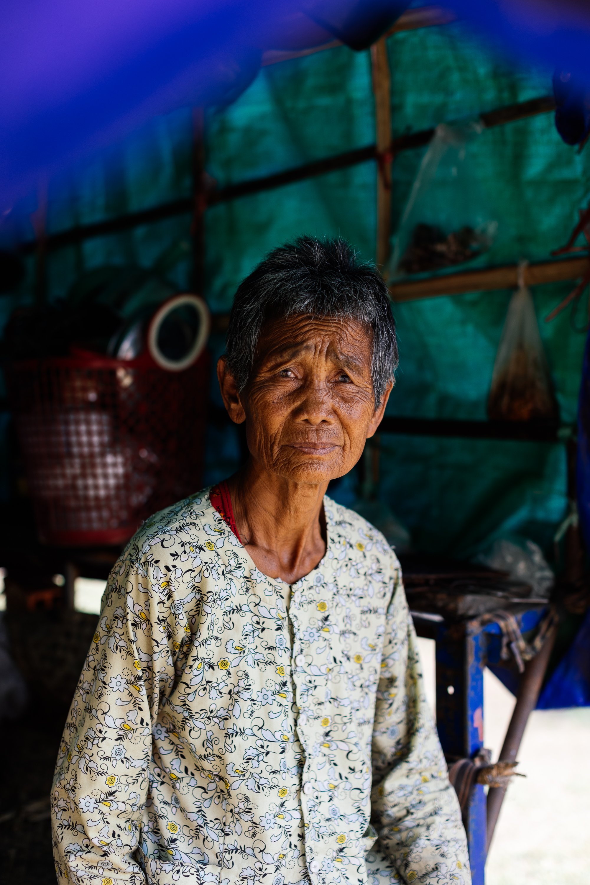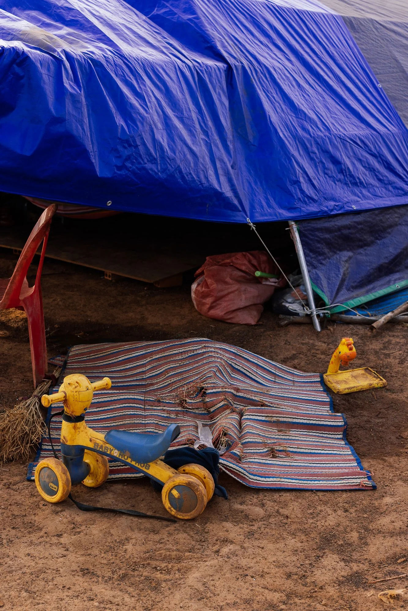 The work develops through ongoing photographic research in displacement camps along the Thai–Cambodian border, where families have taken refuge after fleeing violence and instability in nearby regions. Within these settlements, shelters constructed from tarpaulins, salvaged wood, and reused textiles become spaces where everyday life continues. Cooking, resting, washing, and caring for children unfold within structures never intended to be permanent.